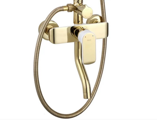 Душова стійка для ванни Rea Bloom із змішувачем золото/білий REA-P9529