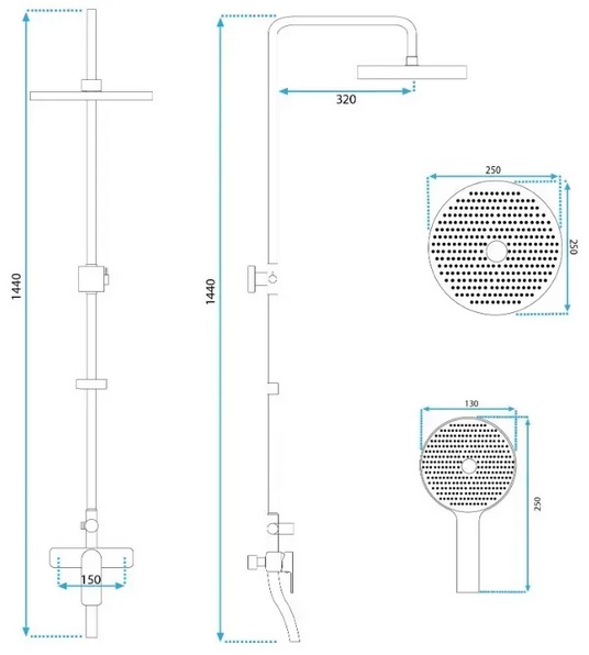 - Дивитися інші: Душові стійки для ванни з виливом Rea