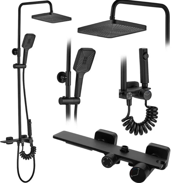 Душова стійка для ванни Rea Helix із змішувачем чорний REA-P6618