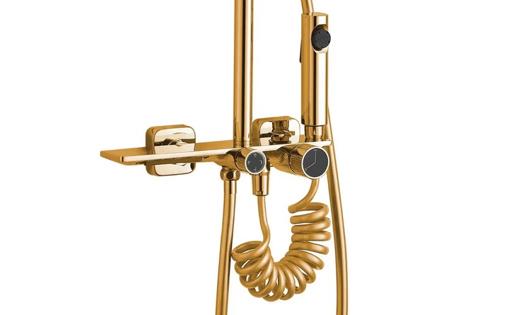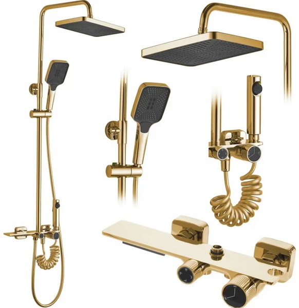 Душова стійка для ванни Rea Helix із змішувачем золото REA-P6619