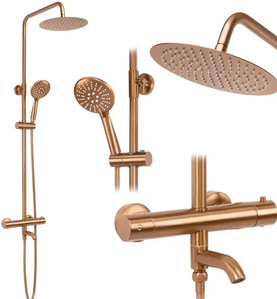 Душова стійка для ванни Rea Lungo з термостатом матова мідь REA-P8807