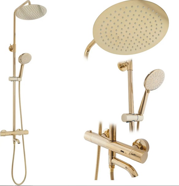 Душова стійка для ванни Rea Lungo з термостатом золото REA-P4114