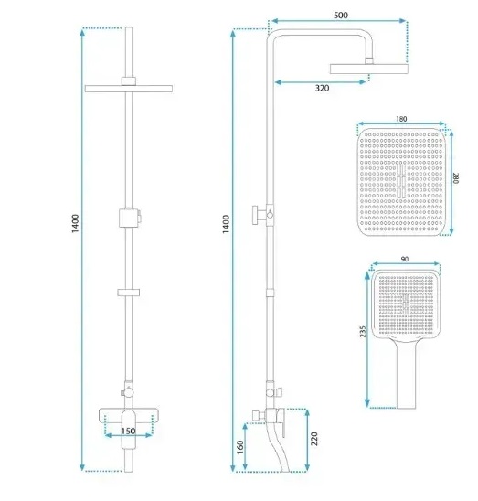 - Дивитися інші: Душові стійки для ванни з виливом Rea