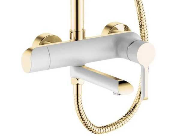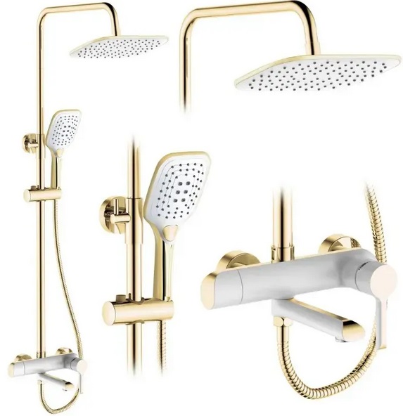 Душова стійка для ванни Rea Melia зі змішувачем білий/золото REA-P2406