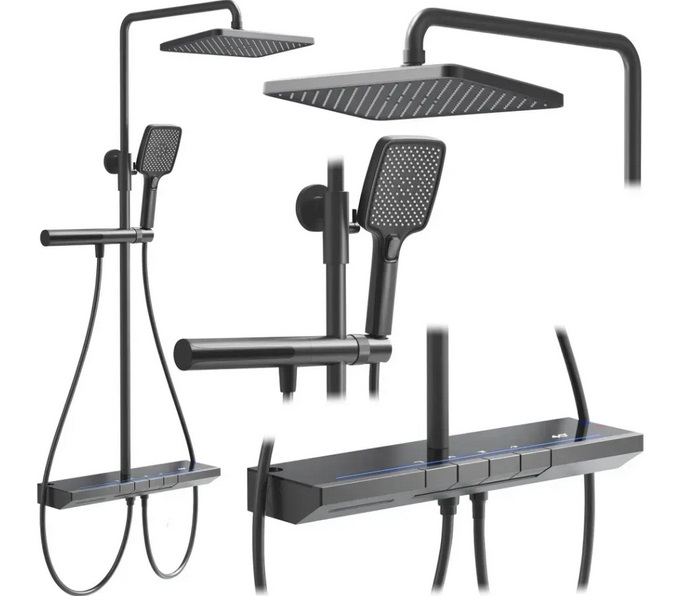 Душова стійка для ванни Rea Pedro з термостатом графіт REA-P0896