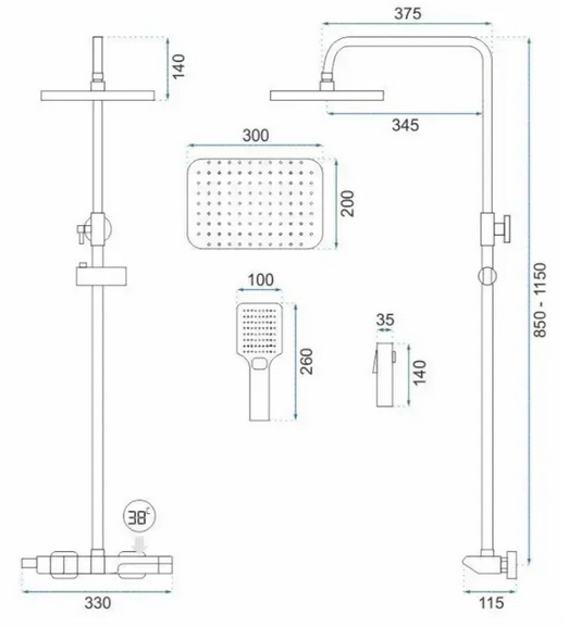 - Дивитися інші: Душові стійки для ванни з виливом Rea