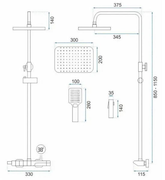 - Дивитися інші: Душові стійки для ванни з виливом Rea