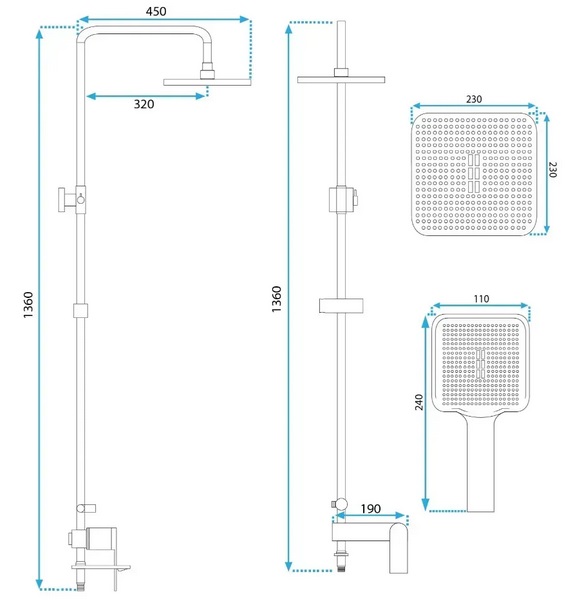 - Дивитися інші: Душові стійки для ванни з виливом Rea