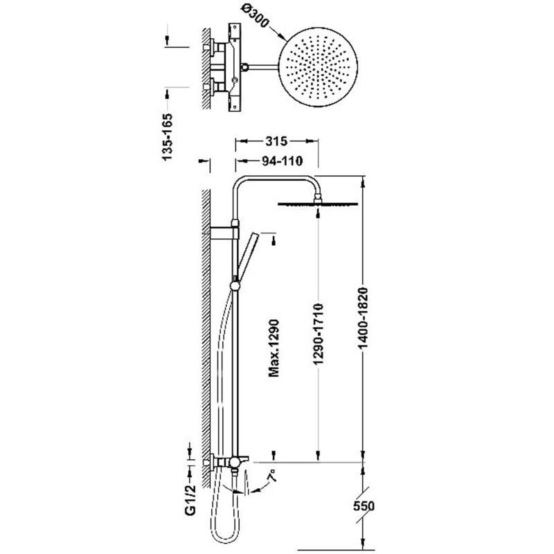 - Регульована душова лійка з нержавіючої сталі: Ø300 мм