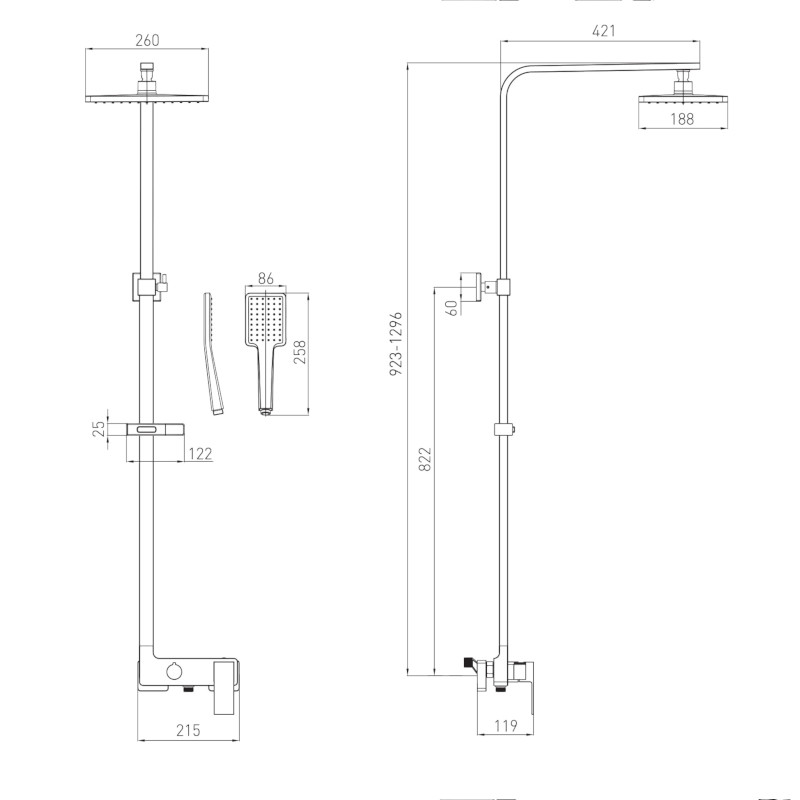- Дивитися інші: Душові стійки для ванни з виливом Volle