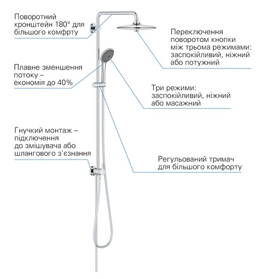 - Дивитися інші: Душові стійки для душа (без змішувача в комплекті) Grohe