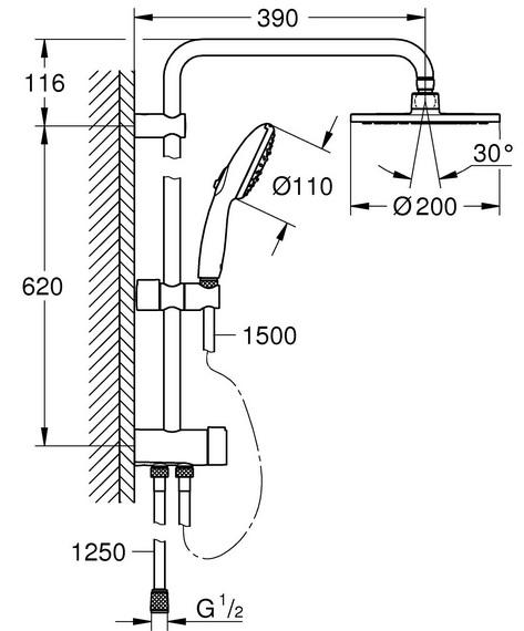 - універсальний монтаж: підключення до змішувача/підключення з 1250 мм душовим шлангом з різьбленням в 1/2""