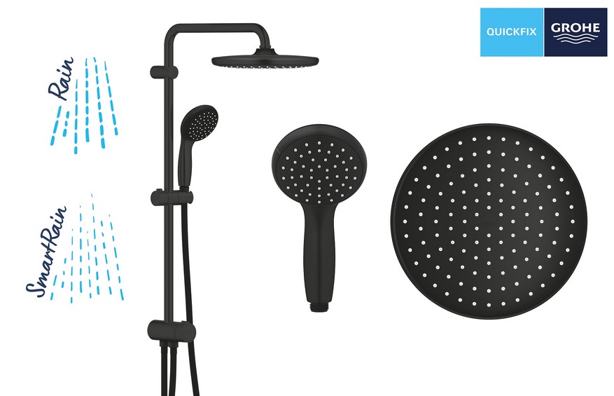 Душева стійка Grohe QuickFix Vitalio Start System 250 з верхнім та ручним душем чорний матовий