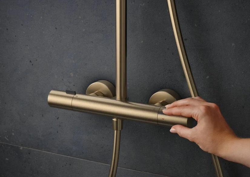 Душова стійка Hansgrohe Pulsify S Puro Showerpipe 260 1jet EcoSmart із термостатом бронза 24237140