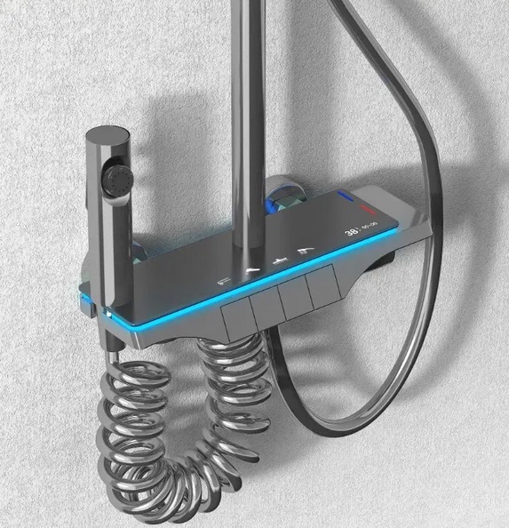 Душова стійка Rea Savio з термостатом графіт REA-P8412