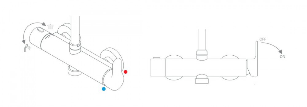 - конструкція змішувача: CoolFeel - регулятор температури зліва зменшує надмірне нагрівання поверхні змішувача