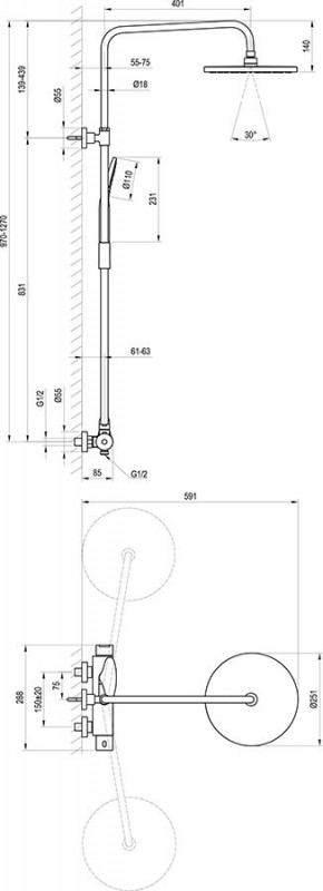 - регульована висота верхнього душу: 97-127 см