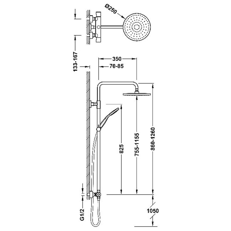 Душева стійка Tres Base Plus з термостатом матовий чорний