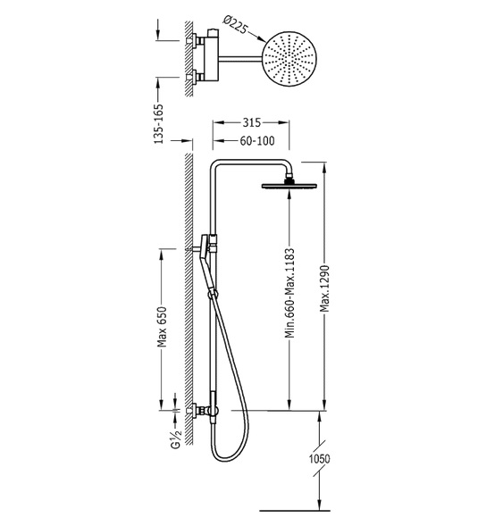 Душова стійка Tres Lex-Tres зі змішувачем верхнім і ручним душем хром