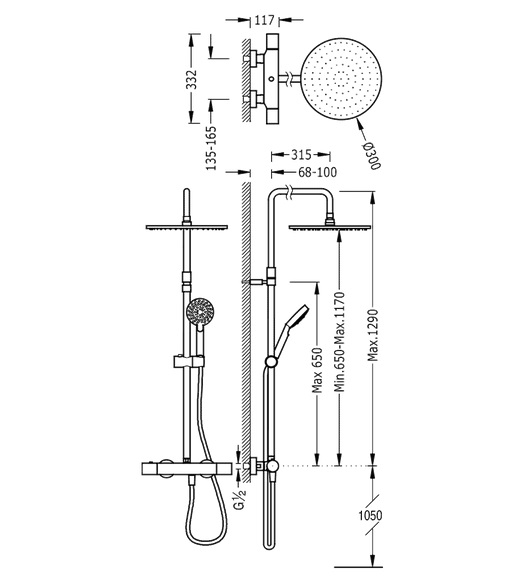 Душова стійка Tres Max-Tres термостатичні c верхнім і ручним душем хром