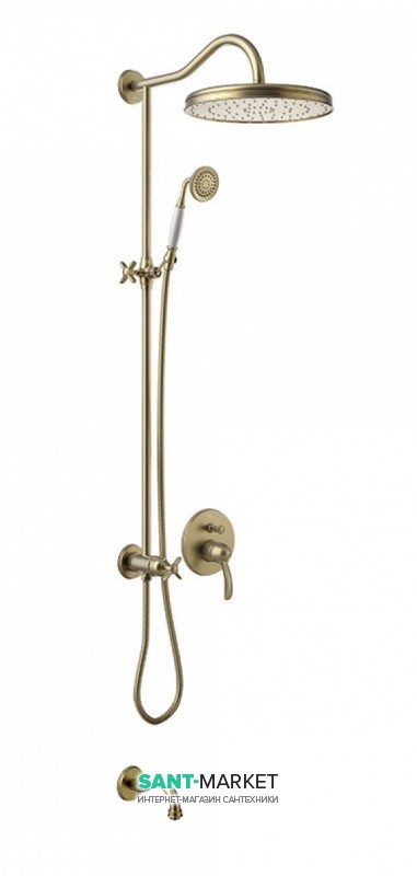 Душова стійка Tres Tres-Сlasic з одноважільним вбудованим змішувачем і зливом для ванни состаренная латунь матова