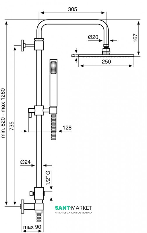 - Розділ: Душові стійки для душа (без змішувача в комплекті)
