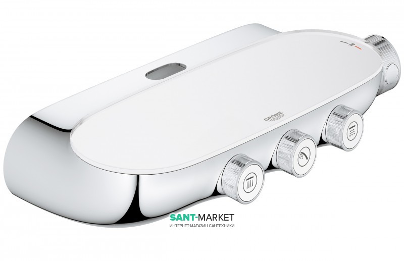 GROHE є унікальною системою GROHE Rainshower®, оснащеною інноваційною технологією кнопкового управління SmartControl. Управління всіма функціями душа ще ніколи не було настільки простим. Лише однією кнопкою можна включити душ і керувати натиском душових струменів. Включення душу відбувається за натисканням кнопки з інтуїтивно зрозумілим символом, а сила тиску води регулюєтьсяобертанням рукоятки, якою легко керувати навіть мокрими руками.