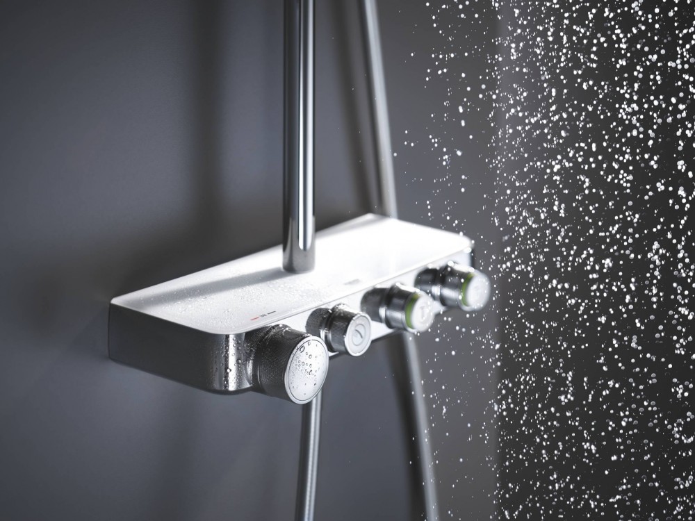 Спробуйте душ, про який ви завжди мріяли – розкішні потоки води обволікають вас і все, що потрібно – під рукою, адже душова система GROHE Euphoria SmartControl 310 Cube оснащена передовими технологіями.