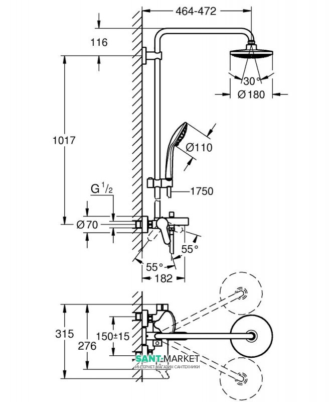 - Дивитися інші: Душові стійки для ванни з виливом Grohe
