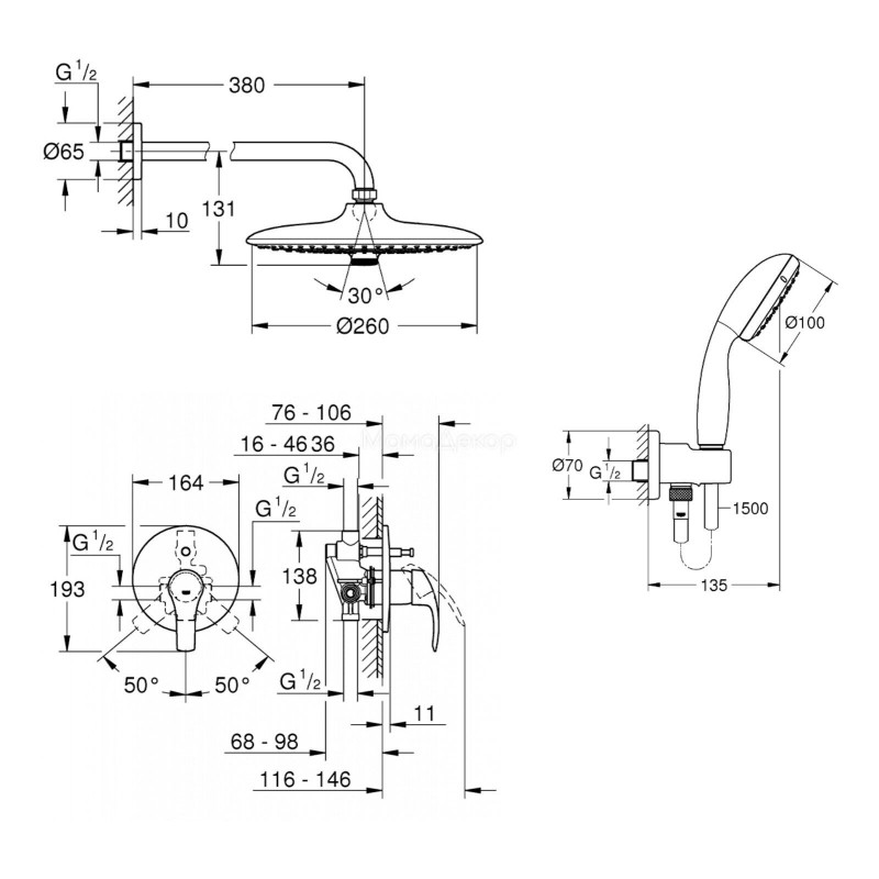 Душова система Grohe Eurosmart прихованого монтажу хром
