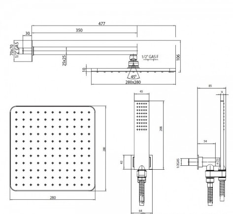 Опис: Bossini M 80201 COSMO SQUARO Душова система з термостатом зірвати монтажу