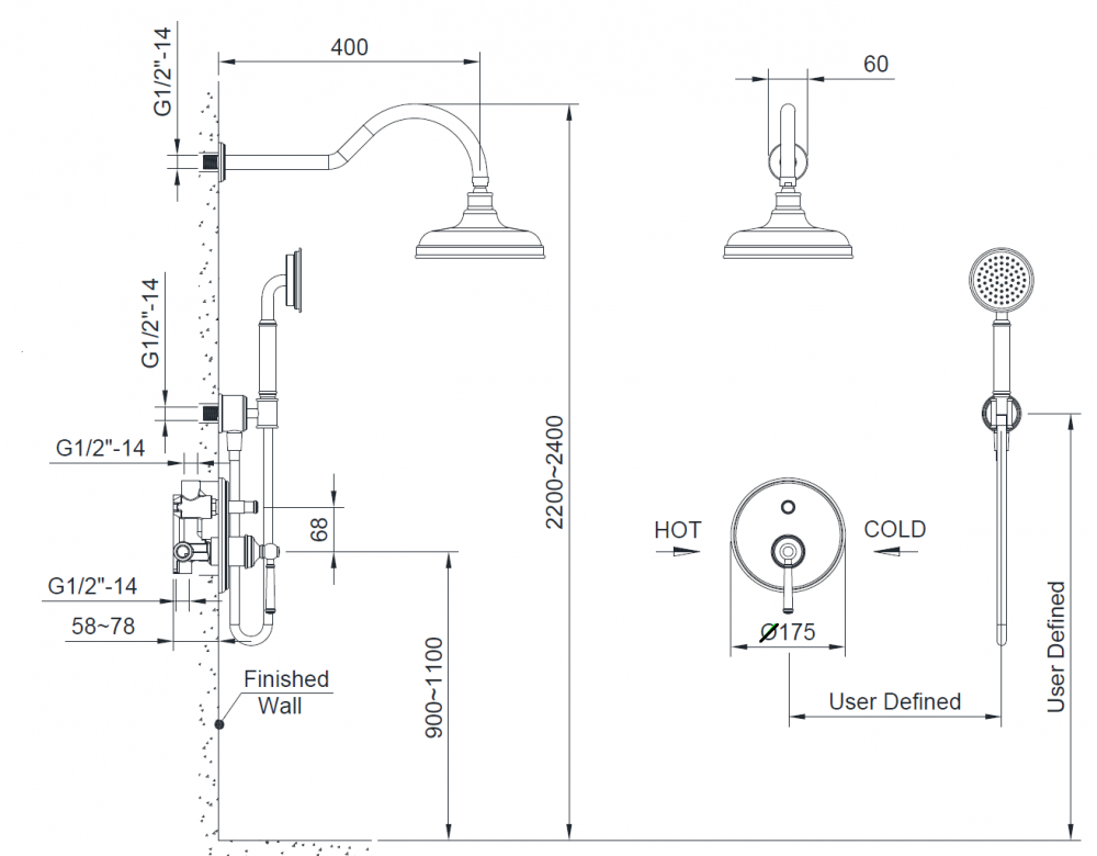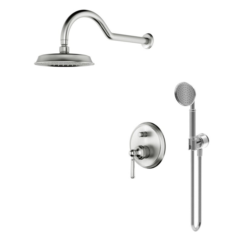 Комплект прихованого монтажу для душу, настінний монтаж, колір – brush nickel. 35mm Sedal картридж. Тримач для душу. Верхній душ 220 мм. Ручний душ 99мм. Шланг 1500 мм.