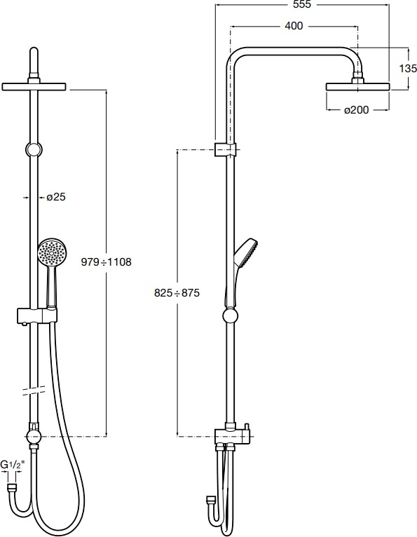 Універсальна стійка для душа може бути з'єднана з будь-яким одноважільним змішувачем або термостатом (для душу або ванни).