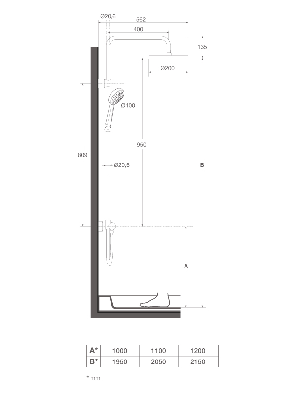 - Форма насадки верхнього душу: кругла Ø 200 мм.