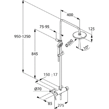 душ з кульовим шарніром, регулювання верхнього душа по висоті