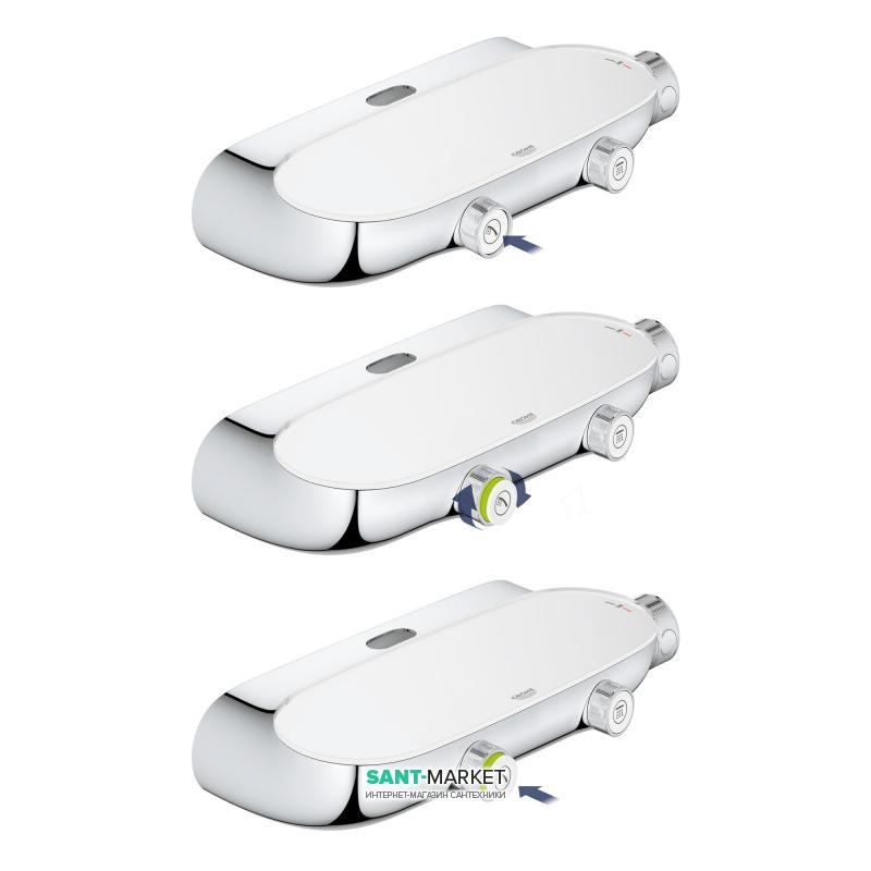 Шукаєте душову систему, яка забезпечить максимальний комфорт і стильно виглядатиме? Все залежить від того, який душ ви хочете: інноваційна технологія SmartControl дозволяє вибирати та комбінувати верхній та ручний душ, а також можливі режими розпилення та регулювати об'єм води шляхом натискання/поворотом кнопки. Пропонуємо Вам вибрати з двох можливих режимів струменя, ручний душ має розслаблюючий режим Rain та тонізуючий GROHE Rain O2, а 360 мм верхній душ XXL обволікатиме ваше тіло у ніжний потік води. Для приголомшливого комфорту та безпеки, інтегрована технологія GROHE TurboStat® запобігає неприємним стрибкам температури води. Кнопка SafeStop захистить вашу чутливу шкіру від опіків, а завдякисистемі GROHE CoolTouch® корпус змішувача ніколи не нагріється. Водозберігаюча технологія GROHE EcoJoy® сприяє збереженню навколишнього середовища. Для верхнього душу, GROHE Rain O2 або PureRain може бути встановлений як другий альтернативний режим розпилення під час початкової установки