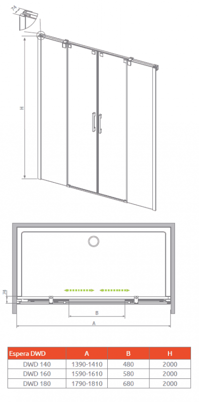 Колекція Espera це набір кабін і дверей в нішу які відрізняються надійністю і стилем. Espera створена для уживаний, які точно знають чого хочуть від життя. Колекція отримала кілька призів від читачів різних журналів. Всі вироби з цієї колекції допускається встановлювати як на піддон так і безпосередньо на підлогу. Крім того, всі вироби допускається встановлювати зпорогом або без порога змінюючи нижній фіксатор (в комплекті).