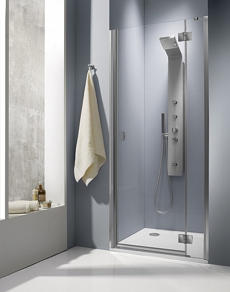 Radaway Essenza DWJ - одностулкова, орні двері в нішу на петлях. Двері підвішена на латунних, хромованих петлях з підйомно-опускним механізмом і системоюпозиціонування двері, відкриваються назовні кабіни створюючи широкий і зручний вхід. Допускається встановлювати як на піддони, так і безпосередньо на підлогу.