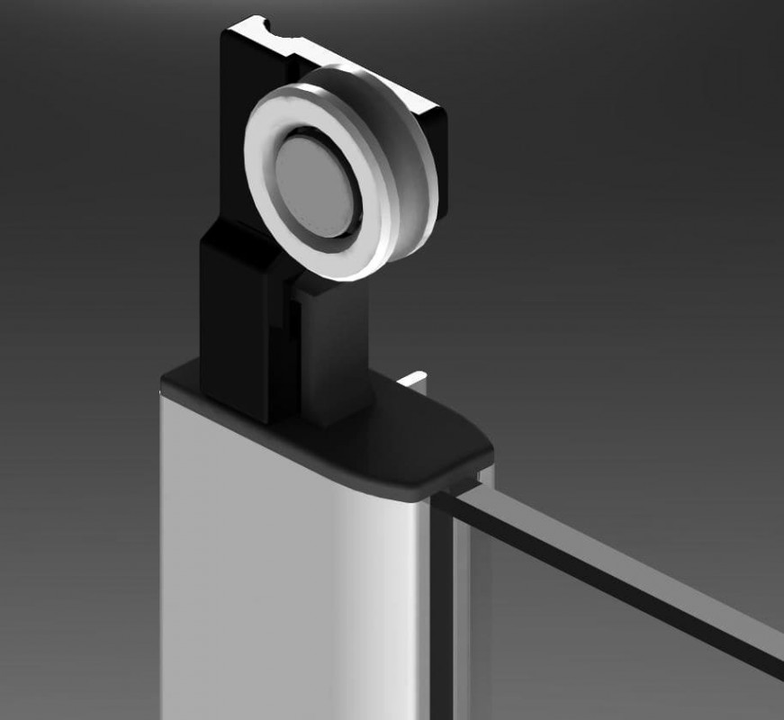 - двері підвішена на двох подвійних регульованихроликах. Ролики з підшипниками, підшипники з мастилом. Це гарантує тихе і плавне відкривання і закривання дверей.