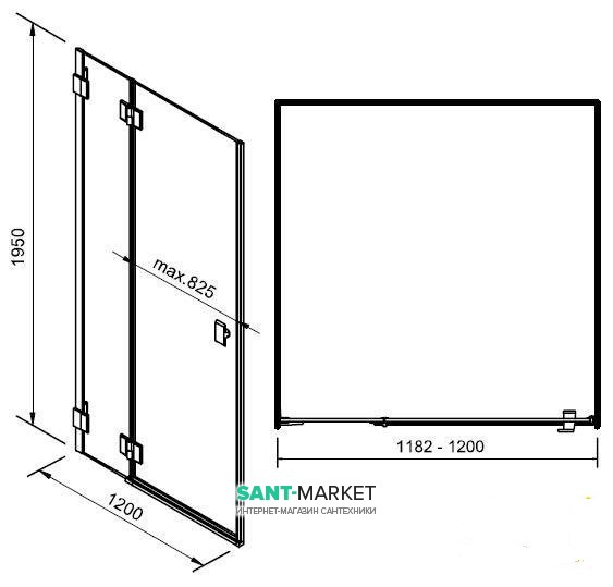 Душові двері в нішу Kolo NIVEN скляна орні 120х195 FDRF12222003R
