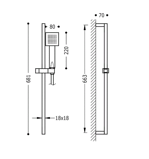 Душовий гарнітур зі штангою Tres Cuadro-mini латунь хром