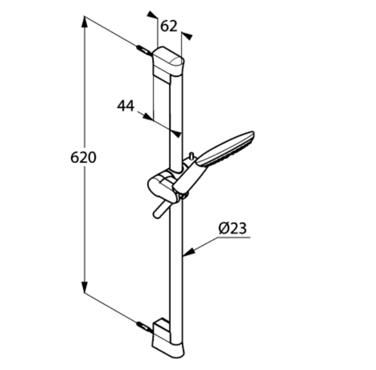 - пересувний держатель для душа, регульований по вертикалі і горизонталі