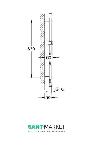 Душева штанга 600 мм (27892000 (Душева штанга GROHE Euphoria Cube 600 мм, хром))