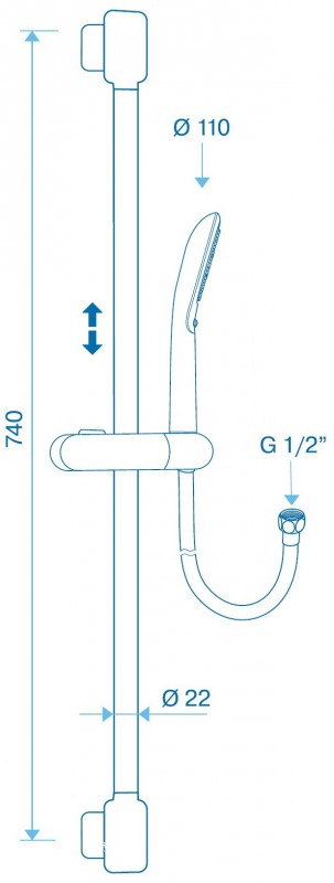Представлена тут модель душового гарнітура RN020 серії Round відKoller Pool, комплектується тримачем для душу, душової штангою висотою 74 см з кріпленнями, ручний лійкою діаметром 11 см з трехструйним режимом роботи і душовим шлангом довжиною 150 см.