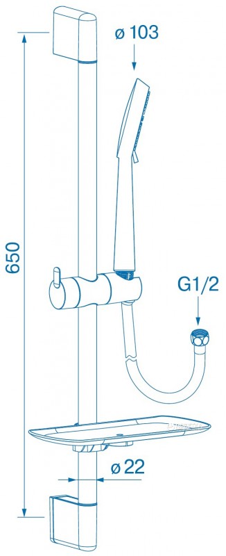 Представлена тут модель душового гарнітура RN010серії Round від Koller Pool, комплектується тримачем для душу, душової штангою висотою 65 см з кріпленнями, ручний лійкою діаметром 10.3 см з трехструйним режимом роботи і душовим шлангом довжиною 150 см, а також, пластикової мильницею.