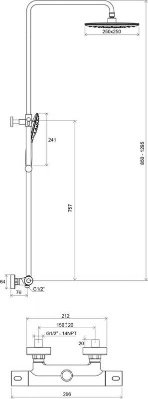 - включає: квадратний ABS верхній душ 25 cм; ручний душ Air - 3 функції, душова штанга з можливістю обертання