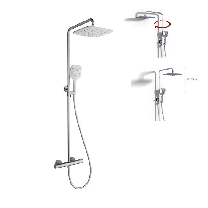 Отримати незвичайні враження можна і від щоденної рутіни.Оптімально широкий обертається верхній душ, доповнений ручним душем, поєднує в собі практичність, стиль і комфорт. Подвійні душові системи оснащений термосмесітелем, який під час купання відповідає за стійкість до зміни температури води.