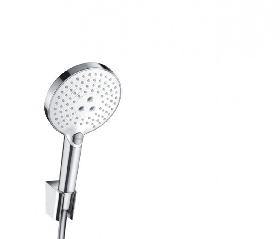Душовий гарнітур з настінним тримачем Hansgrohe колекція Raindance Select S 120 1 25 м хром / білий 26701400