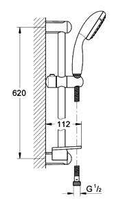 GROHE QuickFix® ( егуліруемое відстань між настінними кріпленнями штанги дозволяє використовувати для монтажу вже наявні отвори в стіні)
