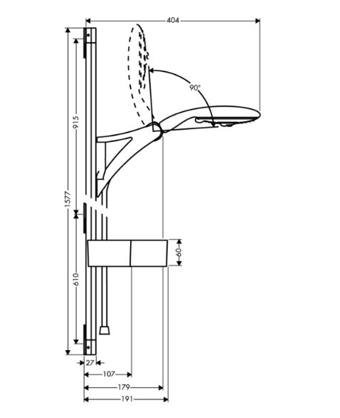 Душовий гарнітур зі штангою Hansgrohe колекція Raindance Unica з мильницею хром 27875000